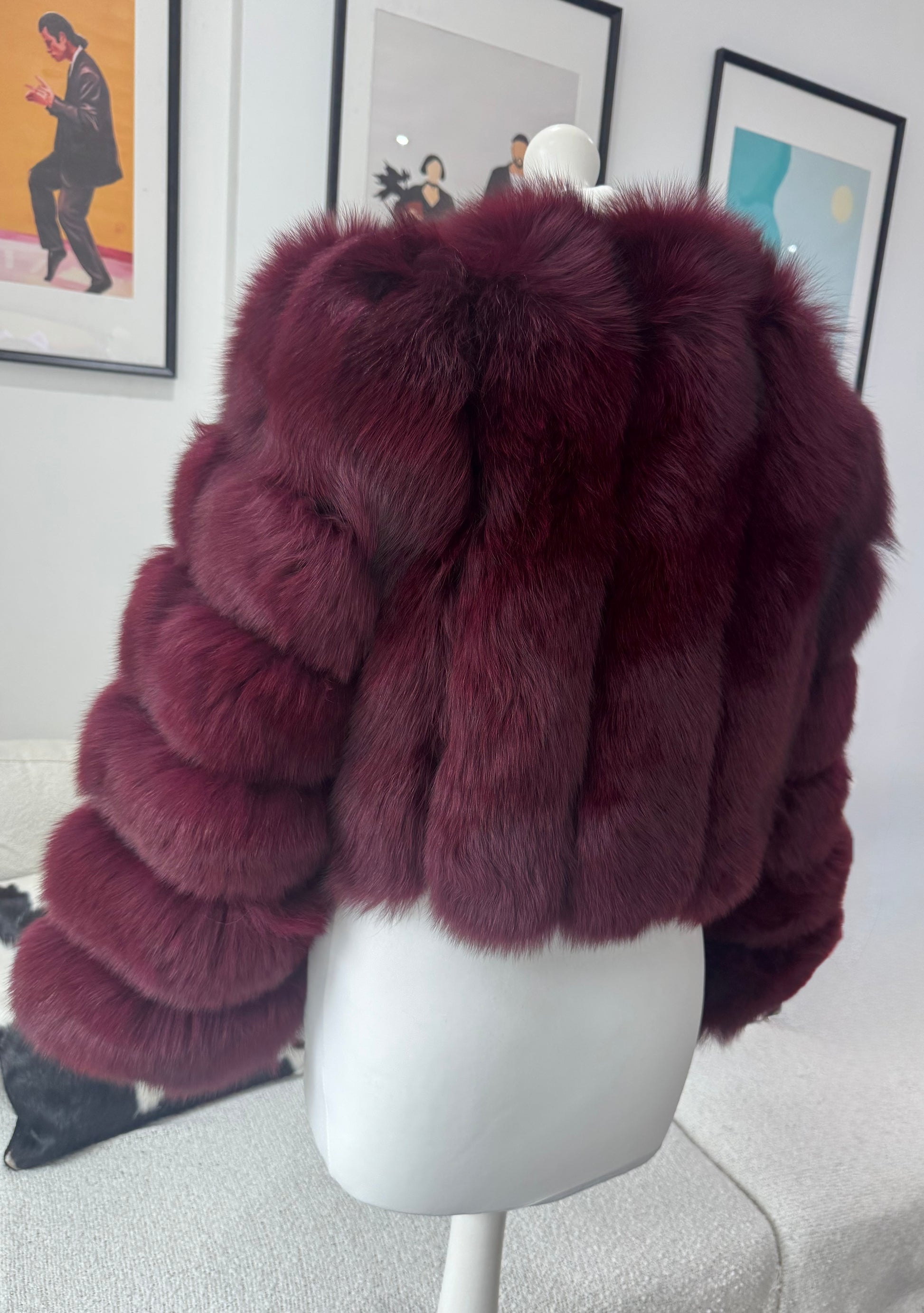 Vertical ‘Cherry Red’ Premium Full Sleeve Fox Fur Coat (10/18 Day Delivery)