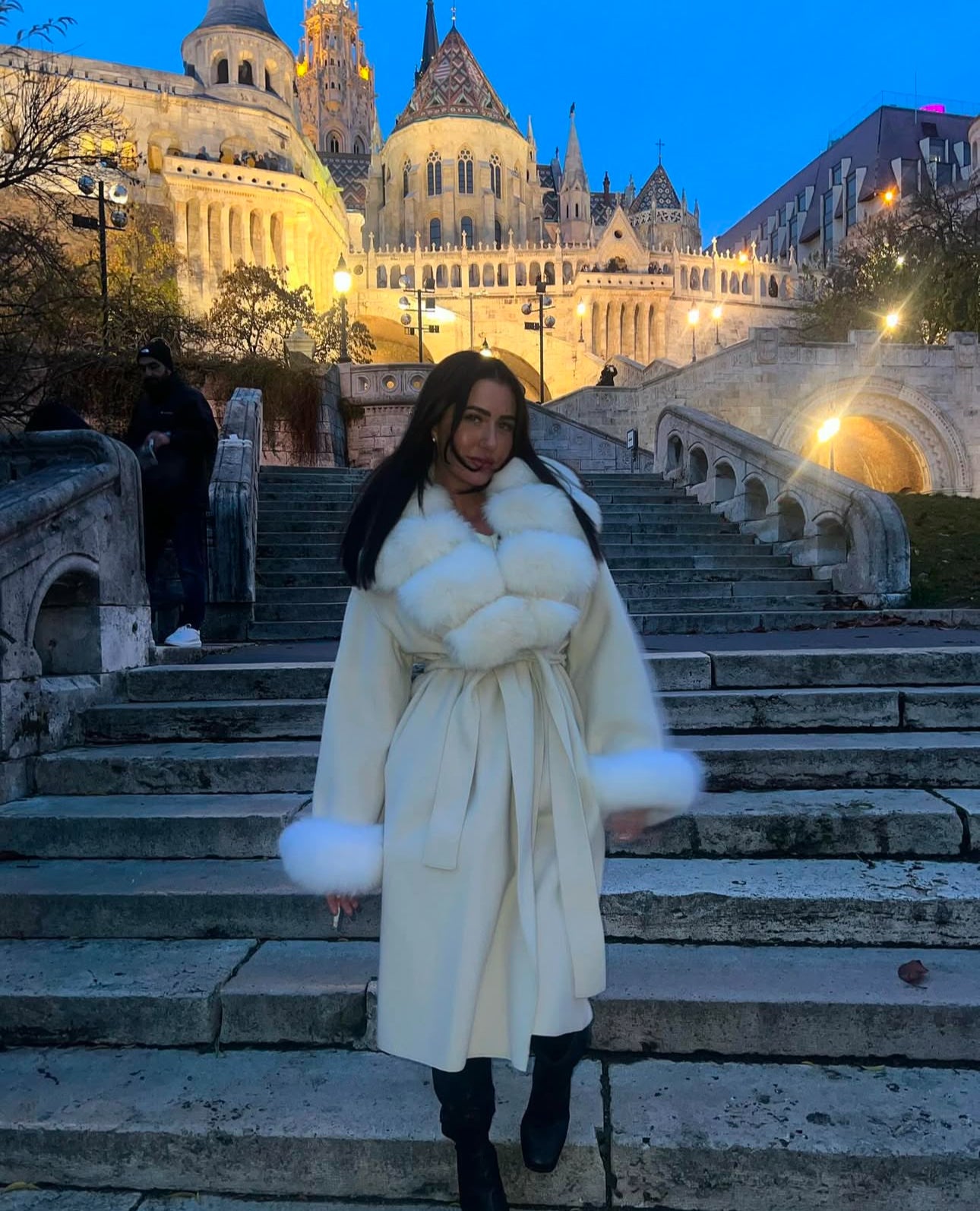 ‘Dolcie’ Cream Long Fox Fur Trim Coat (1/2 Day Delivery)