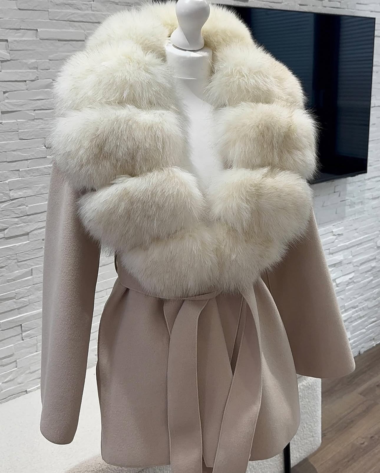 Experience luxury and warmth with our ‘Dolcie’ Shope Belted Fox Fur Coat! Sitting just below the bum area. Including Fox fur collar, provides ultimate comfort and style. Made of a cashmere blend material, this coat is perfect for any occasion. This is an oversized fit - Tie up the waist for a flattering silhouette.