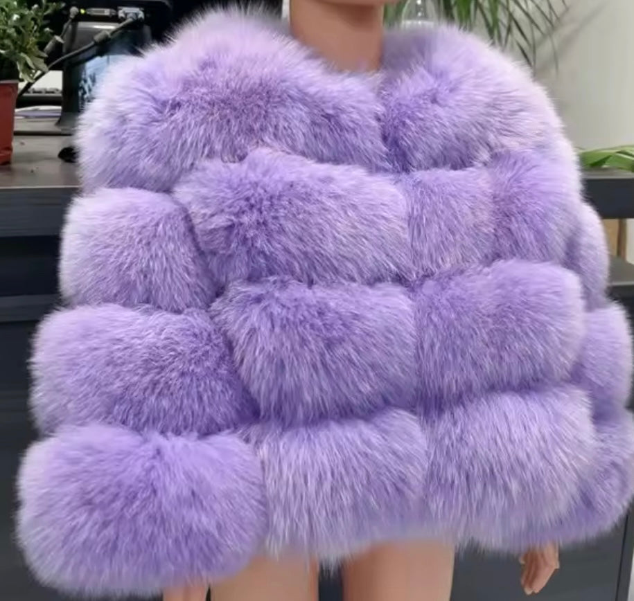 ‘Lilac’ Premium 5 Row Cropped Sleeve Fox Fur Coat (10/18 Day Delivery)