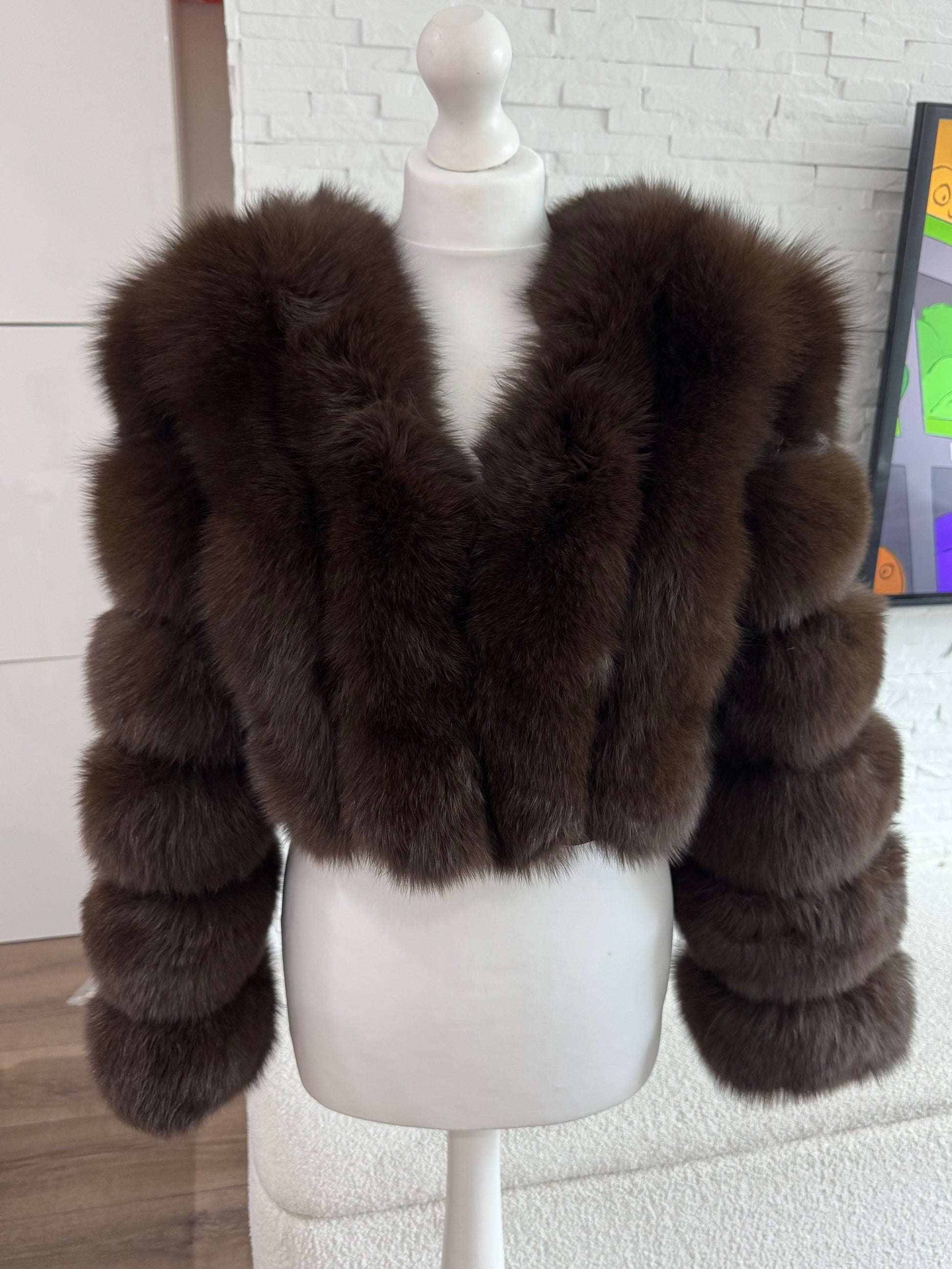 Vertical ‘Chocolate Brown’ Premium Full Sleeve Fox Fur Coat (10/18 Day Delivery)